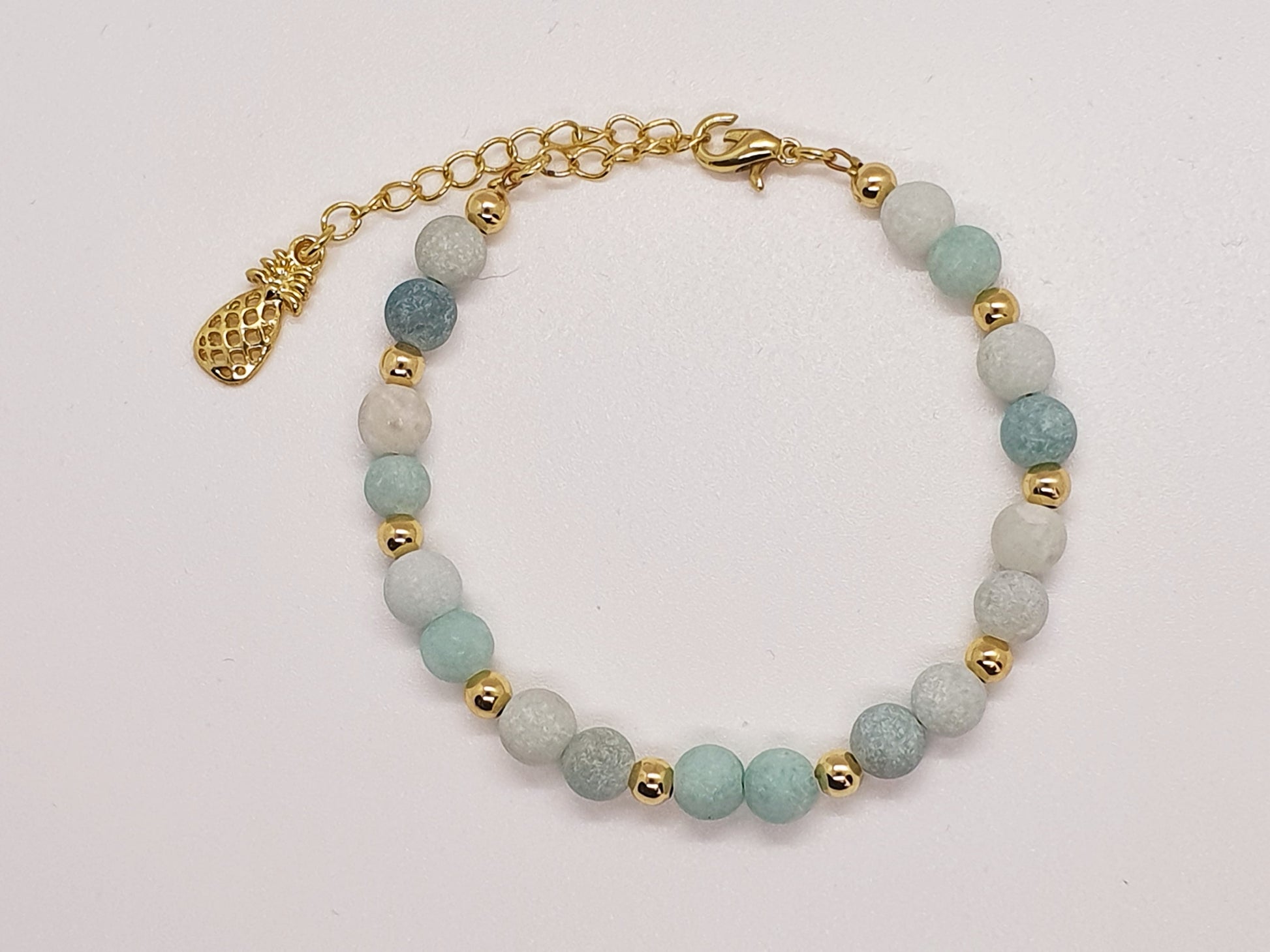 Bracelet avec perles en amazonite mates et perles dorées à l'or fin ou argent 925 Chaine d'extension qui permet d'aller de la taille 16cm à 20cm.